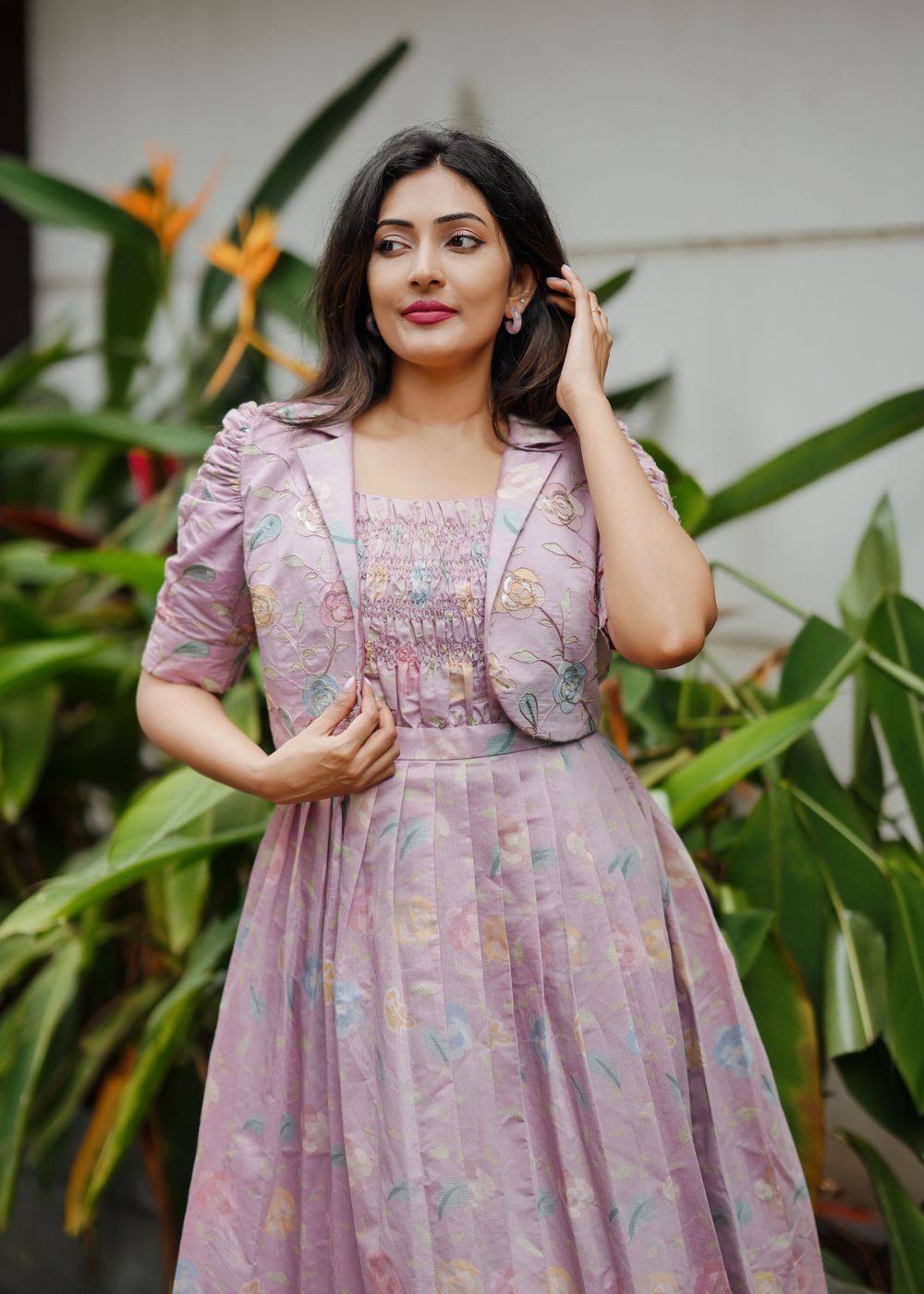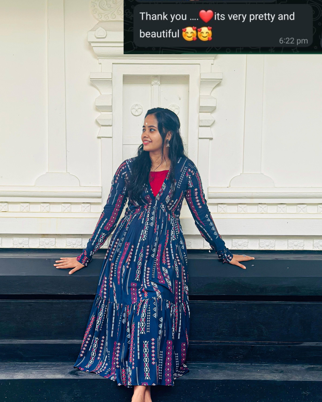 This black, grey, and multicolour floral print dress is a swirl of blooming charm and effortless grace.