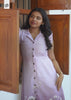 This lavender floral print linen dress is a swirl of soft charm and timeless grace.