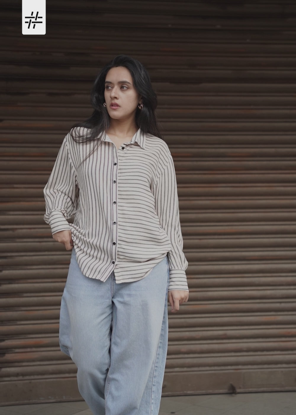 A relaxed-fit cream & black striped shirt featuring a shirt collar neck, full sleeves, and classic cuff detailing—cool, confident, effortless